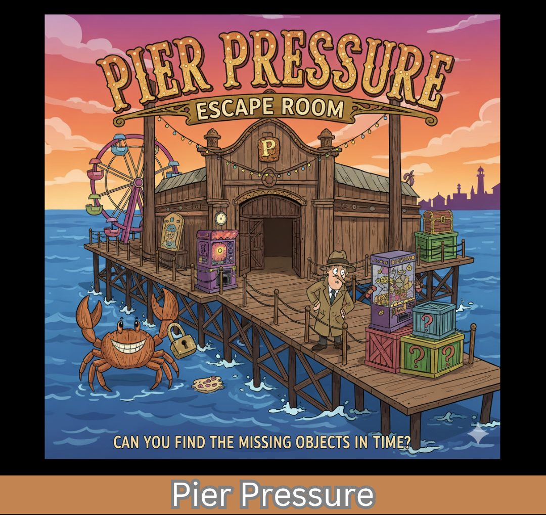 STORY: Welcome back to the boardwalk! The big mini golf competition is today but prized mini golf ball and club have both mysteriously vanished! You have one hour to work together with your team to tackle the ball pit, play games, solve puzzles, find clues, and recover those missing items!
